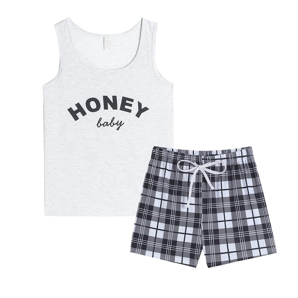 YIJIU Women's Pajama Sets Cute Sleeveless Tank and... More Shorts Sleepwear 2 Piece Pj Set Loungewear X-Large Grey Less