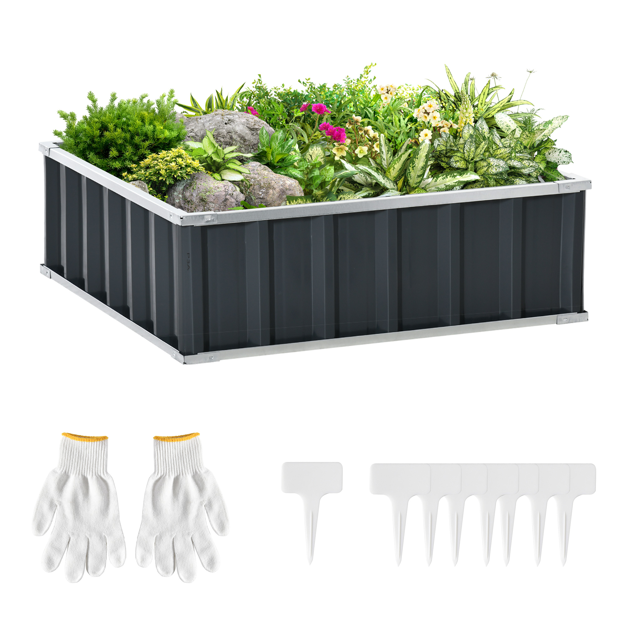 Outsunny 3x3ft Metal Raised Garden Bed, Steel Planter Box, No Bottom w/ A Pairs of Glove for Backyard, Patio to Grow Vegetables, and Flowers, Grey