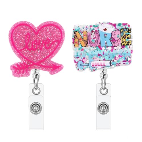 Retractable Badge Holder Cute Badge Reel Holders w... Moreith Id Clip Heavy Duty Id Name Tag Badge Clips Keychain for Nurse Teachers Office Workers & Nursing (2pcs Heart Nurse) Less