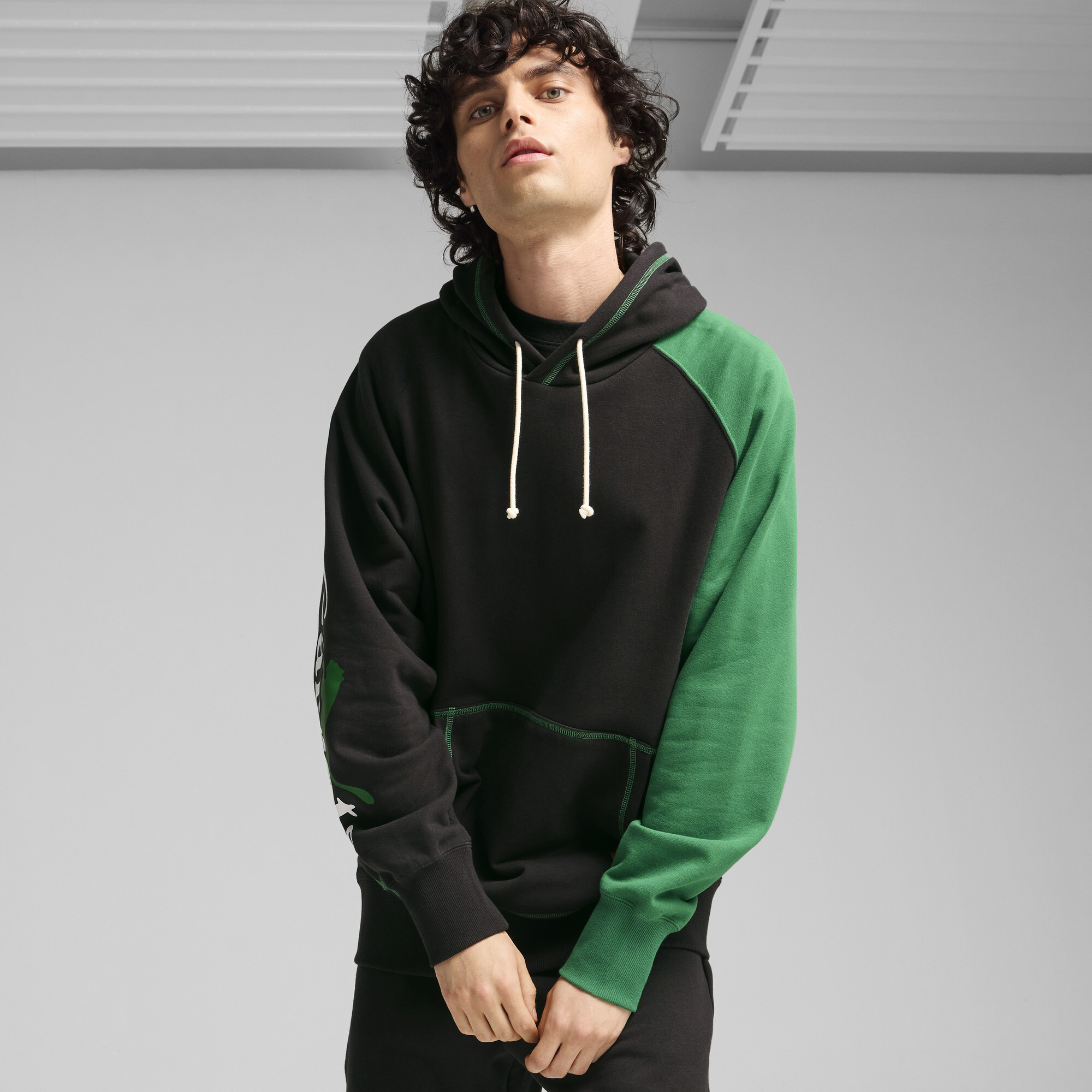 PRODUCT STORYWe teamed up with streetwear brand Ca... Morerrots by Anwar Carrots to create this playful streetwear collection Apparel, footwear, and accessories are given a fresh new look with retro Super PUMA graphics, bold striping, and fresh oranges and greens Inspired by the idea of a scavenger hunt, each garment in the collection features the iconic Carrot logo hidden in a different place for a fun, interactive wearing experience DETAILSRelaxed fit330 gsm, French TerryHidden random placed embroidered carrot badges throughout the garmentColor-blocked sleeve as a design elementHood with external drawcords for an adjustable fitLong sleeve with ribbed cuffs and hemContrast topstitching on the kangaroo pocket as a design feature Less