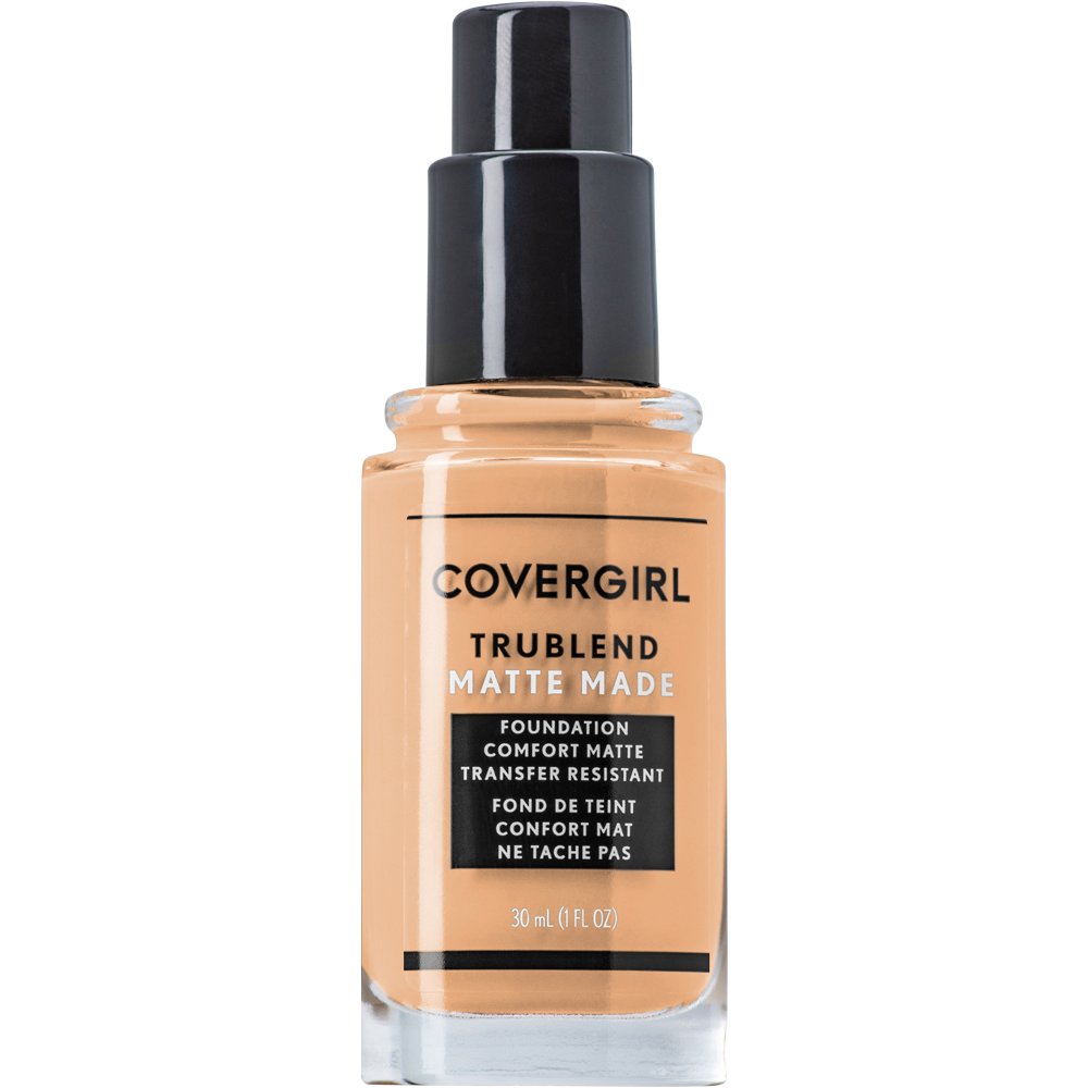 CoverGirl's TruBlend Matte Made Liquid Foundation ... Moreprovides a clean, matte look by minimizing pores and absorbing excess oil. Light and smooth, this foundation offers up to 12 hours of shine control for a fresh feel throughout the day.Crafted with Flexi-hold technology and mattifying powders, it forms a transfer-resistant, non-drying layer that won't cake or settle into lines. Available in 40 inclusive shades, this oil-free formula suits all skin types, delivering a flawless matte finish. Color:Golden Ivory L30 Less