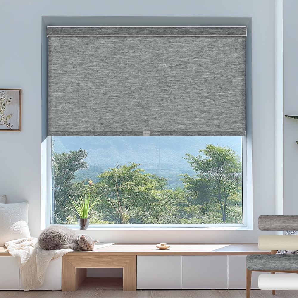 Light Filtering Roller Shades,Cordless Striped Jacquard Roller Blinds,Room Darkening with Cassette Valance Protecting Privacy Window Shades for Home O