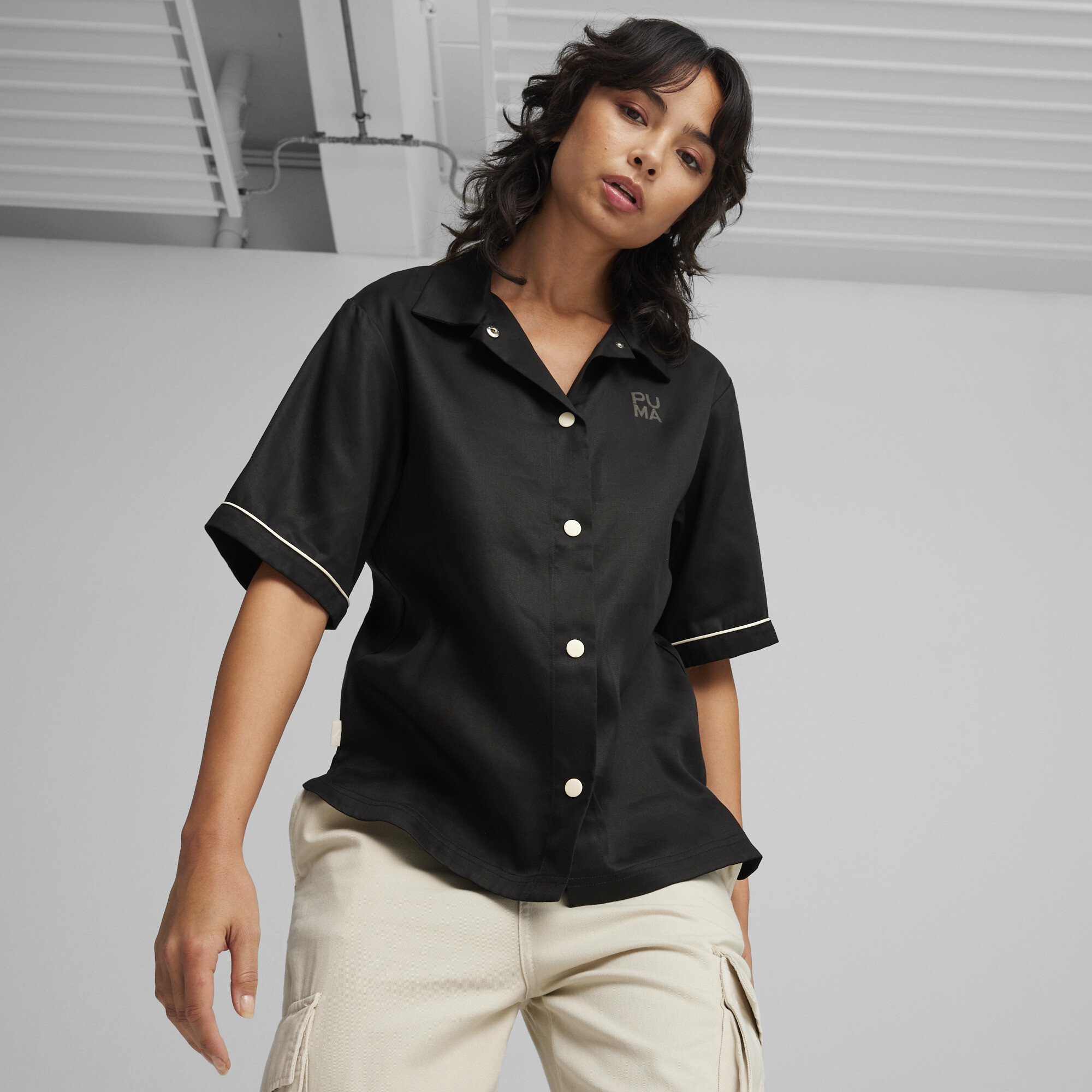 Women's PUMA INFUSE Woven Shirt in Black, Size XL, 100% lyocell