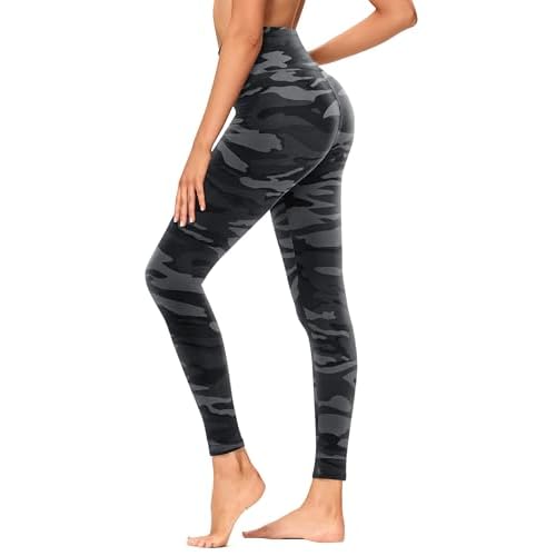 GAYHAY High Waisted Leggings for Women - Soft Opaq... Moreue Slim Tummy Control Printed Pants for Running Cycling Yoga NO POCKETS Small-Medium A-black Camouflage2 Less