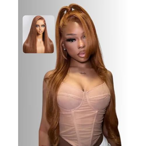 UNICE Copper Brown Straight Pre Everything Glueles... Mores Frontal Wig Human Hair Pre Plucked Pre Cut 13x4 Lace Front Wigs Human Hair Bleached Invisible Knots Put on and Go Wig 150% Density 24 inch 24 Inch Copper Brown|Pre Everything Wig Less