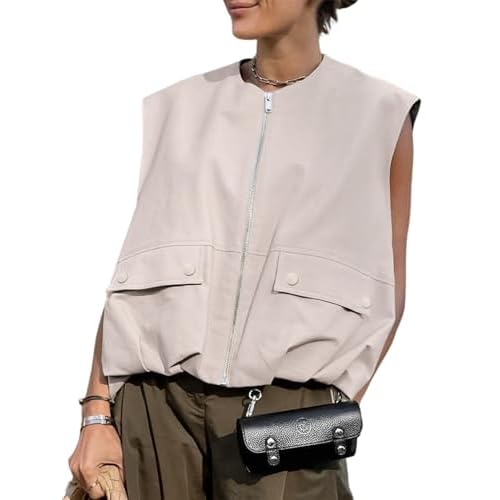 PAODIKUAI Women's Casual Zip Up Vest Cargo Ruched ... MoreHem Lightweight Sleeveless Blazer Oversized Jackets Top with Pockets Medium Light Grey Less